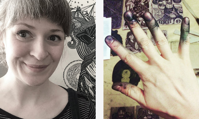 I'm Kat, the hands behind Kat & Kin. Illustrator, ink-spattered printmaker and custodian of two small, shouty humans. I design, carve and print all the work you'll find in my shop - it's fun, messy and enormously satisfying. I love the craft of it all, from scribbled sketches through to the clanking of the press, and I love to tell stories with my work.