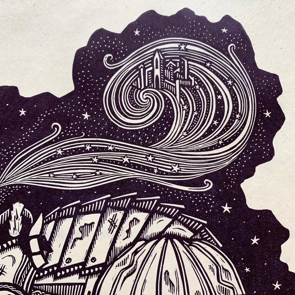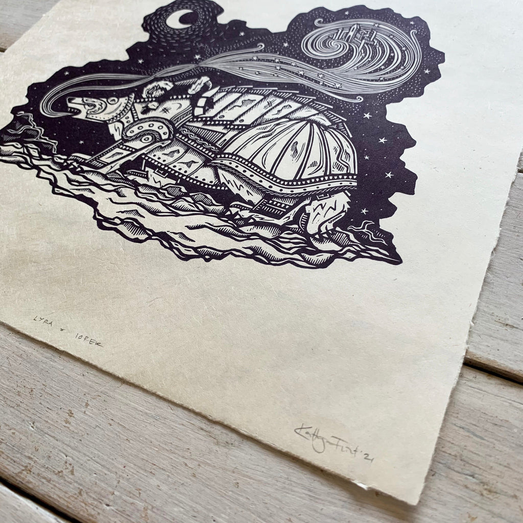 I have loved this book series for a long time, and made this print as a gift for my own daughter Lyra! I'm excited to share it now, in a limited edition of 100, printed on oatmeal-coloured, flecked Japanese paper.