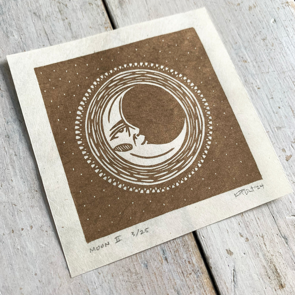 PRE ORDER - Moon (1 of 4) - *Limited Edition* linocut mini print (antique gold, 9 cm x 9 cm)